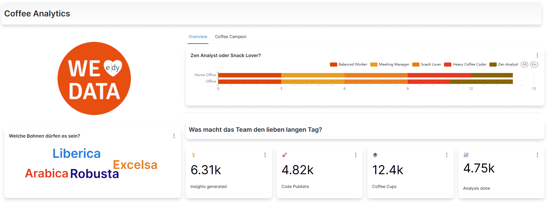 Für unser Coffee-Dashboard haben wir u. a. folgende Charts genutzt: