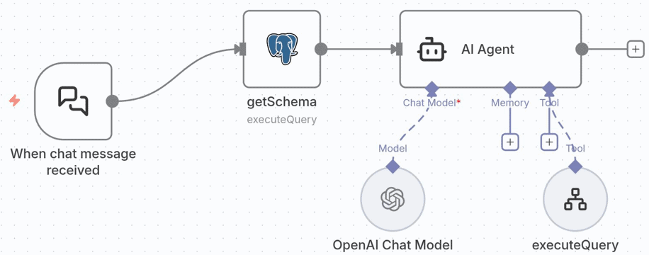AI Agents übernehmen dabei selbstständig die Entscheidungslogik: Die KI analysiert eine Nutzeranfrage in natürlicher Sprache, gleicht die darin enthaltenen Anforderungen mit dem zugrundeliegenden Datenbank-Schema ab und übersetzt die Anfrage anschließend in eine SQL-Query. Diese wird mithilfe eines passenden Tools ausgeführt und das Ergebnis wird im Chat zurückgegeben. Die dafür notwendigen Reasoning-Schritte erfolgen implizit innerhalb des AI- Agents, ohne dass umfangreiche und explizite Steuerlogik im Code implementiert werden muss.